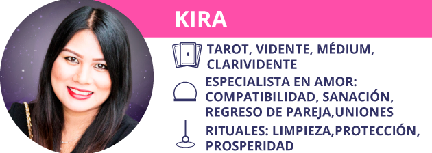 Soy Kira, tarotista, vidente, médium y clarividente con más de 25 años de trayectoria, leyendo más de mil mancias para ofrecerte una guía profunda, precisa y espiritual. Mi misión es ayudarte a comprender tu presente, sanar tu pasado y abrir los caminos hacia el futuro que deseas.